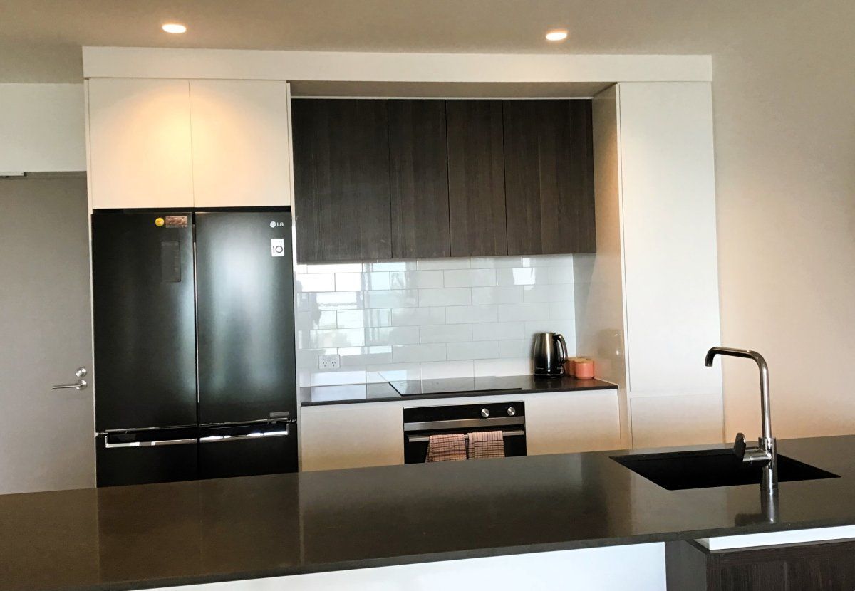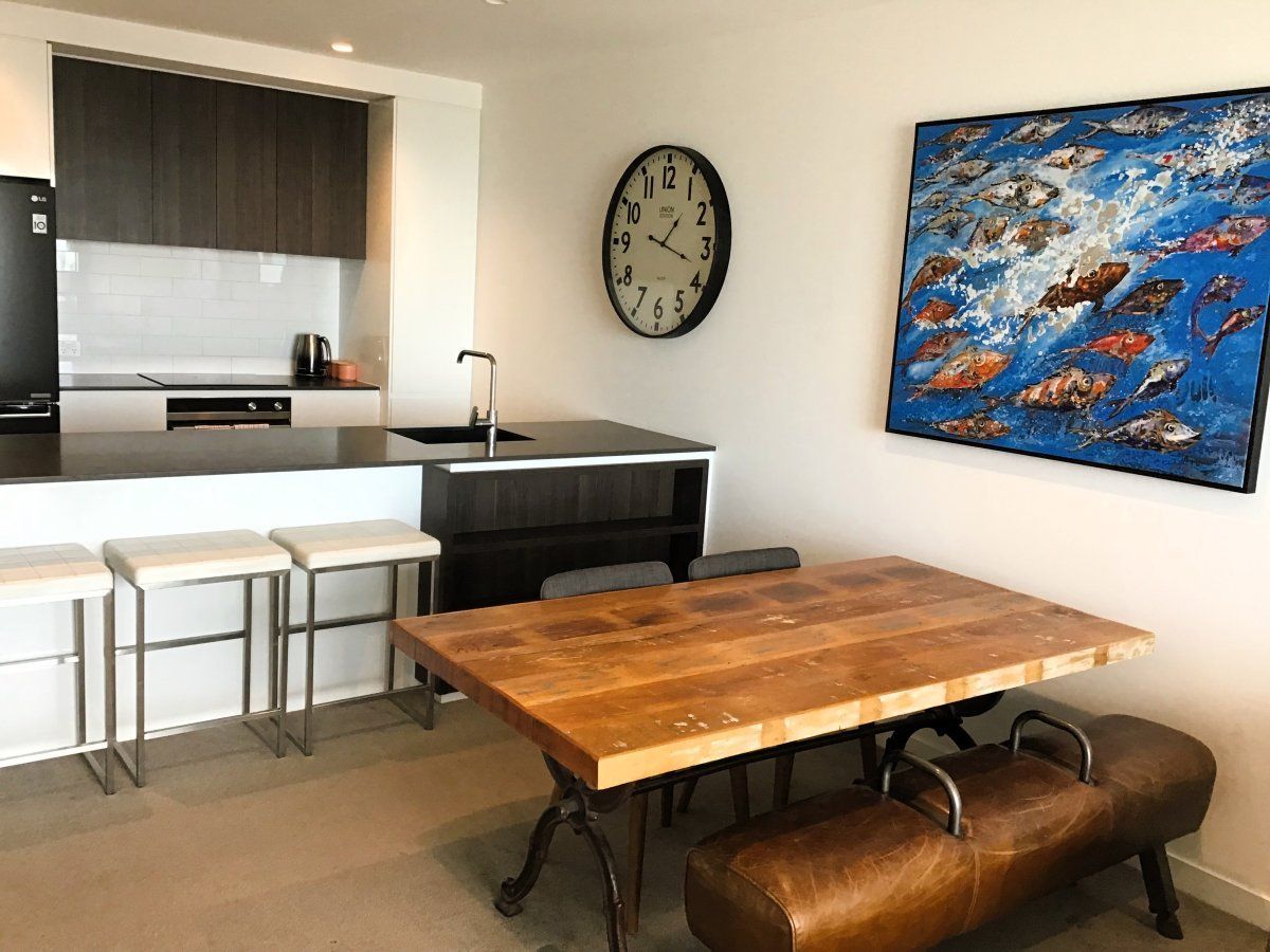 The apartment features two comfortable queen bedrooms, including a master suite complete with private ensuite. A second bathroom ensures added convenience and privacy for all guests. The open-plan living and dining area is designed for comfort and connection, flowing seamlessly into a fully equipped kitchen. A separate laundry provides the practicality needed for both short and extended stays.