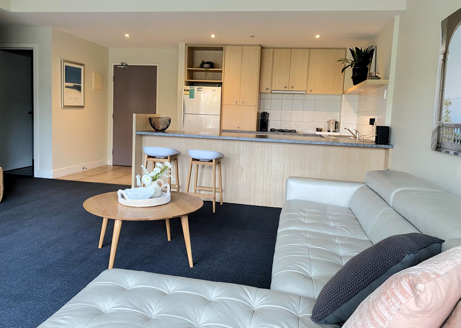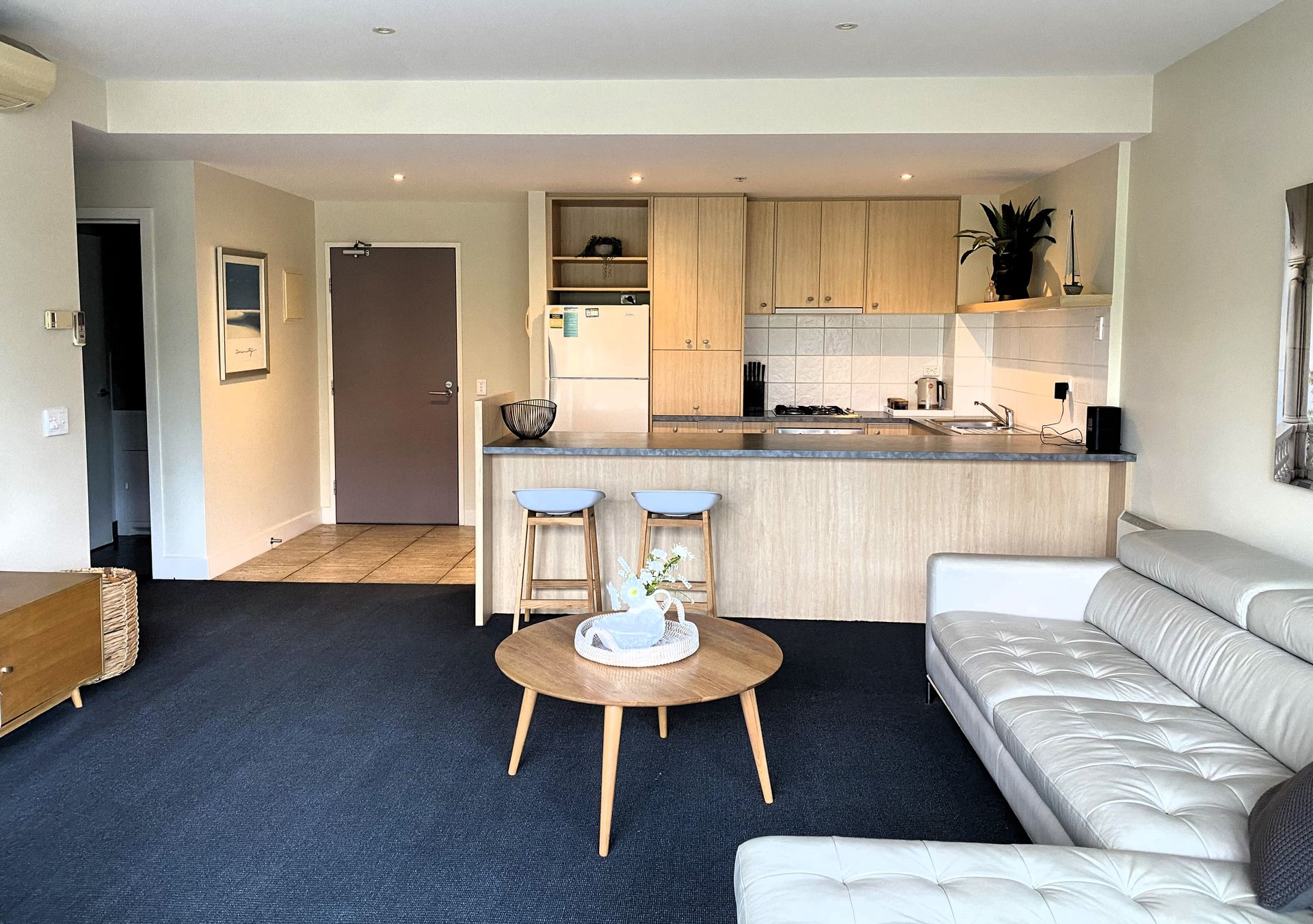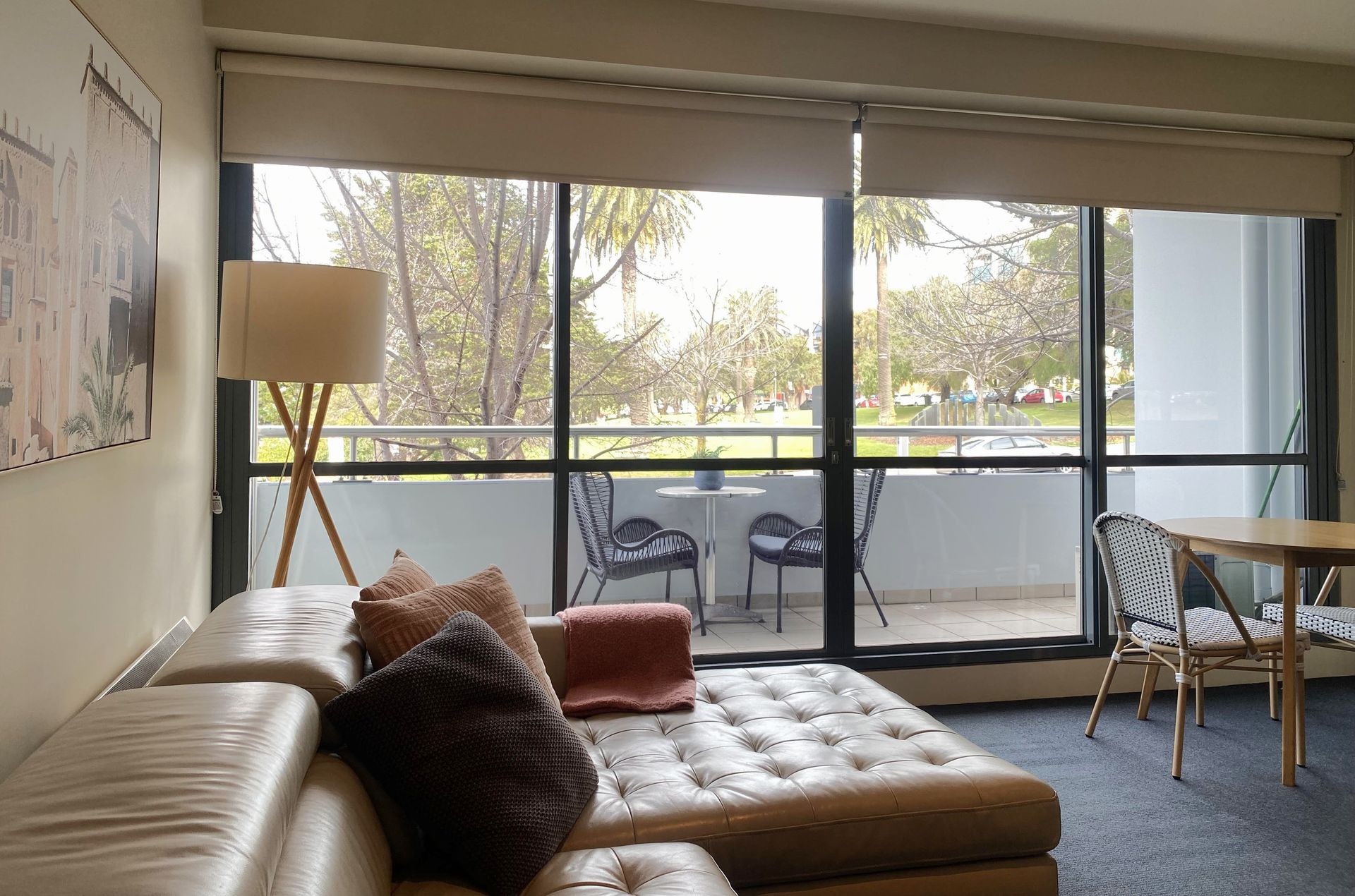 The apartment offers a fully equipped kitchen, separate laundry, and a spacious open-plan living and dining area designed for relaxed coastal living. Step out onto your private balcony and enjoy the lively street view — the perfect spot to unwind after a day exploring the city.